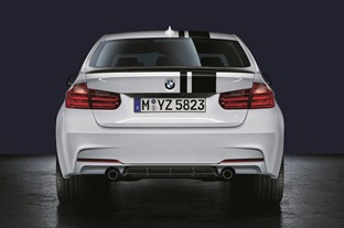 For the exterior appearance of the 3-Series, BMW's M Performance division has prepared a front splitter, rocker panel blades, rear spoiler (in choice of black or carbon fiber finish), rear diffuser, side stripes, and rocker panel decals, while an M Sport Line Retrofit kit is also available.